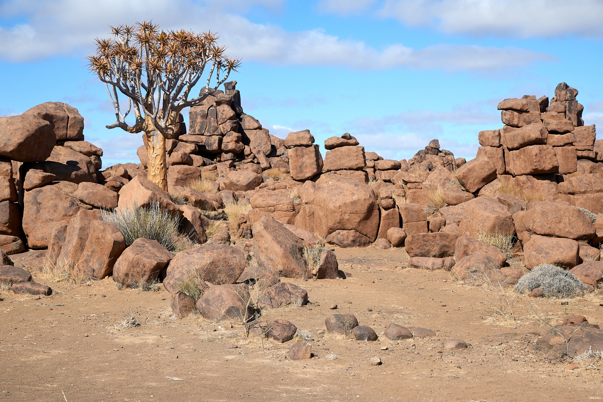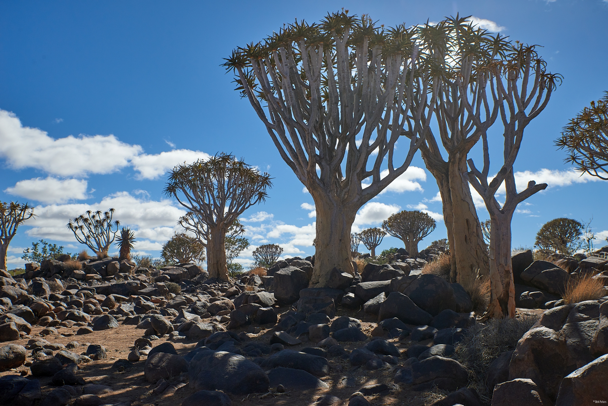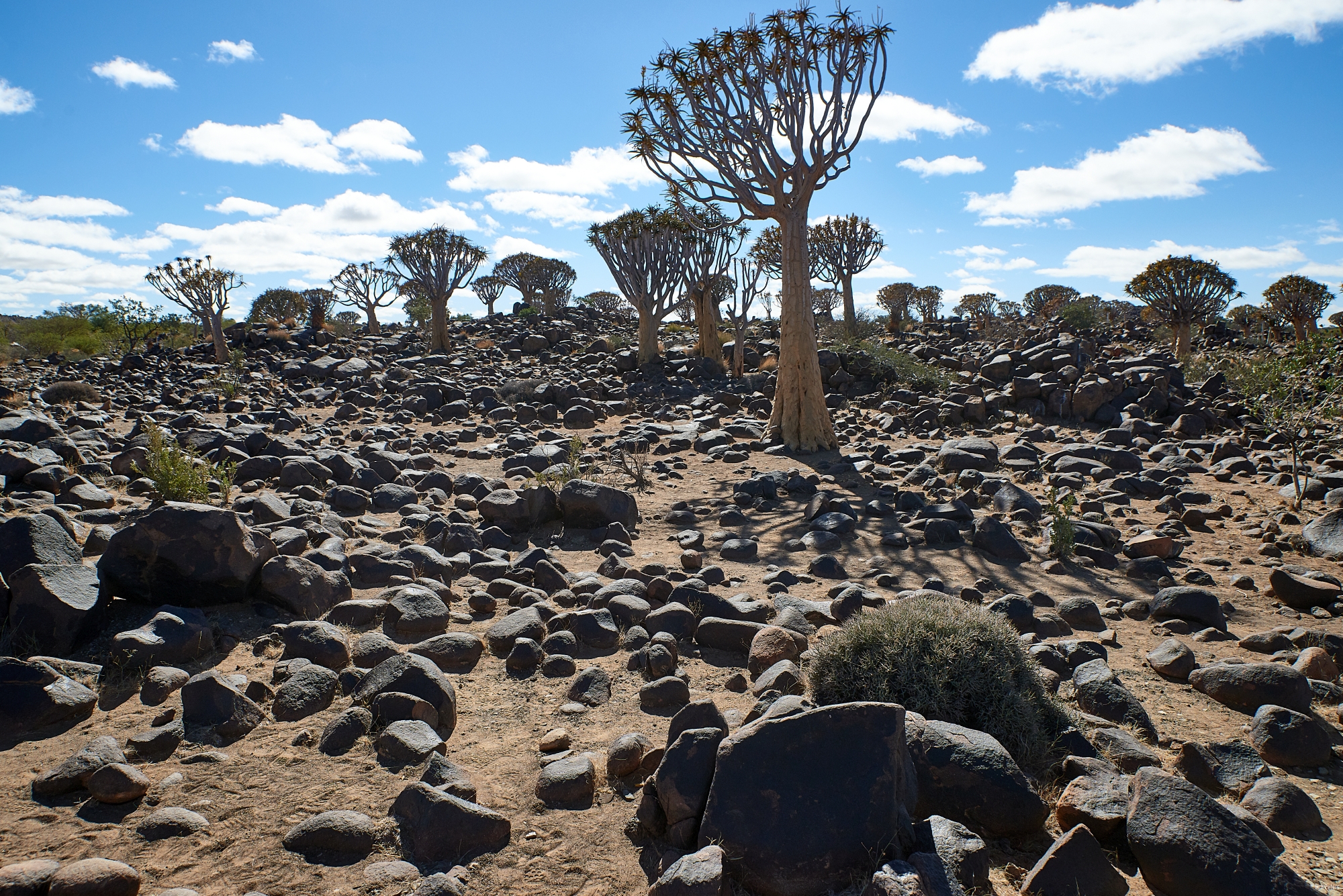 Der zweite Tag führte uns in das Camp Ai-Ais Hotsping Spa. Es liegt an einer heißen Quelle im Ai-Ais Richtersveld Transfrontier Park im Süden Namibias. Den ersten längeren Aufenthalt machten wir am Köcherbaumwald in der Nähe von Keetmanshoop. Diese Köcherbäume wachsen zwar überall im Süden Namibias. Normalerweise treten sie aber nur einzeln auf, hier gab es mehr als 250 Exemplare auf einer kleinen Fläche.