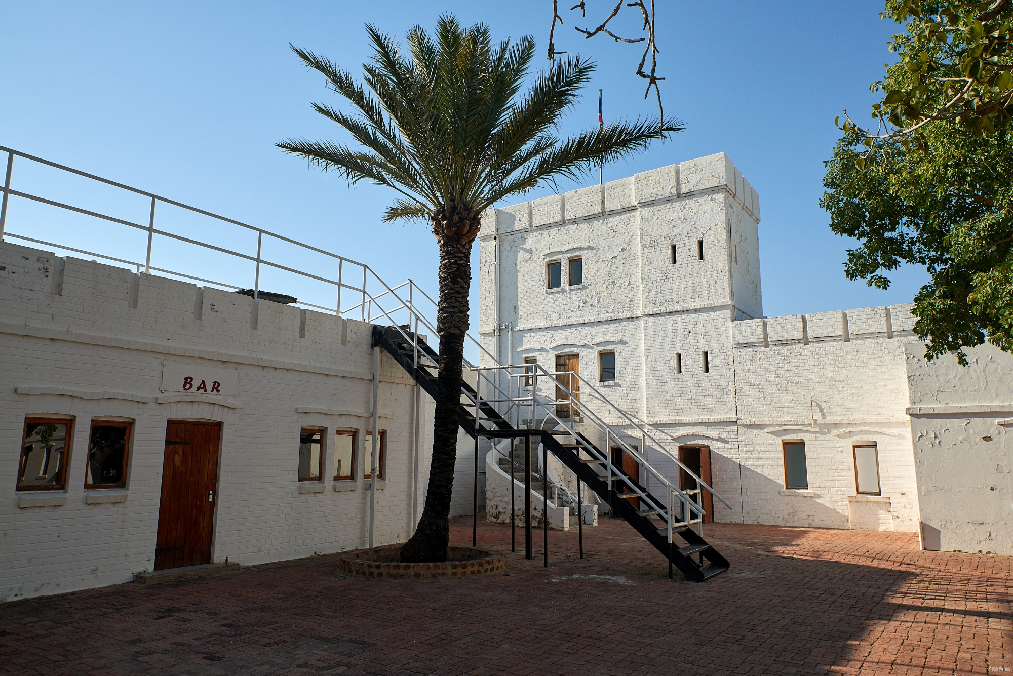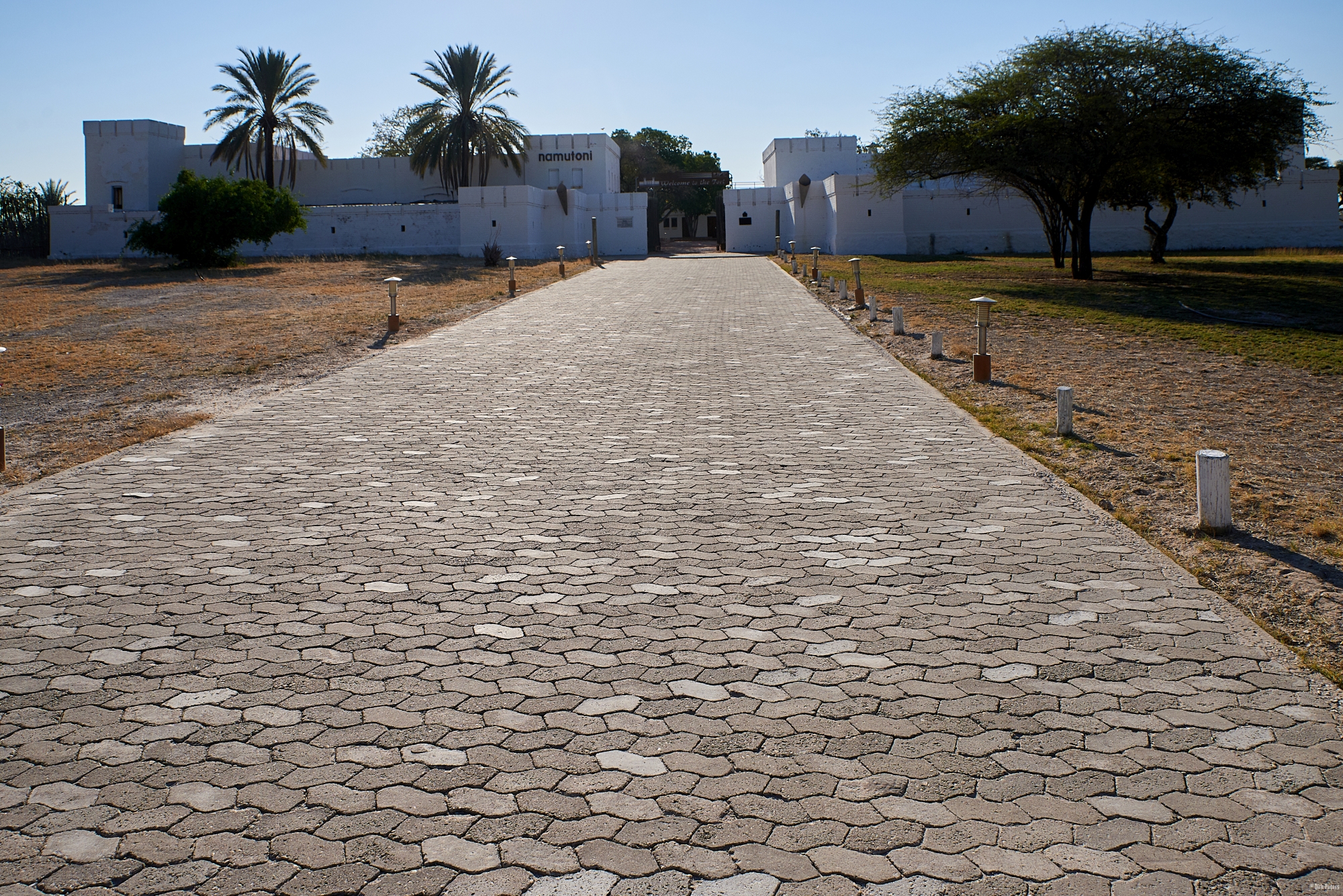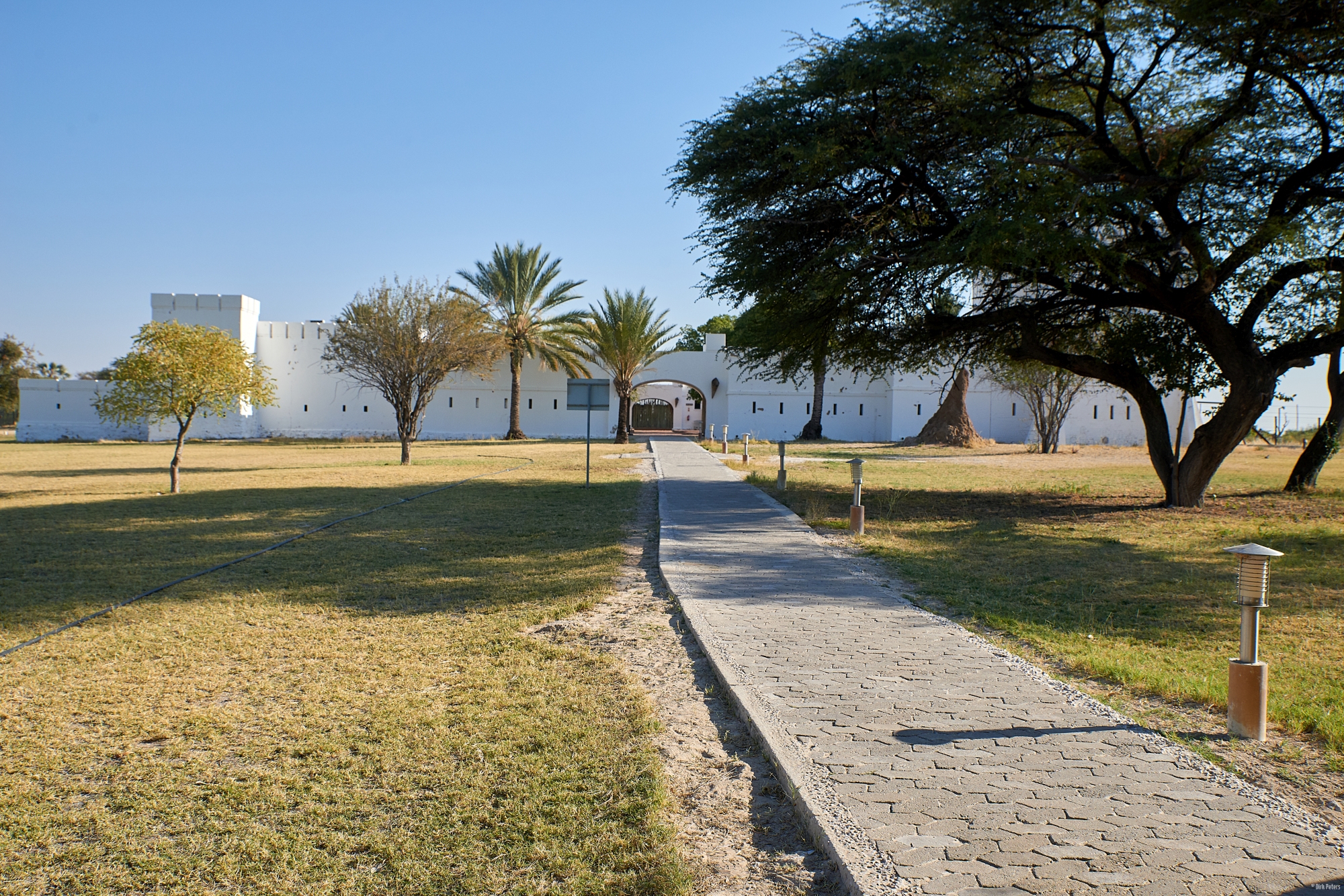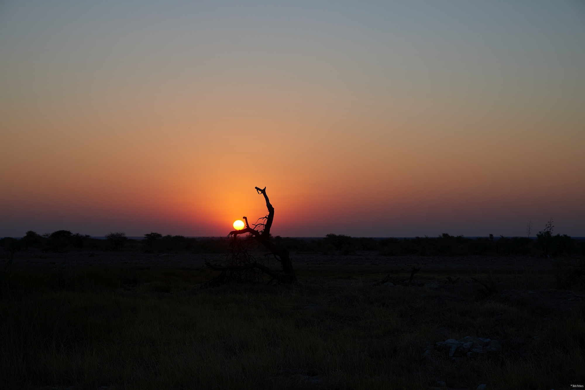 Am Nachmittag erreichte wir Fort Namutoni. Eigentlich wollten wir noch mal Richtung Norden fahren. Aber nach dem Parken stellten wir fest, dass einer der Reifen einen Totalschaden hatte. Also ließen wir, nachdem der Tankwart das Ersatzrad montiert hatte, den Tag in Ruhe ausklingen. Das örtliche Wasserloch blieb leider von Tieren unbesucht.