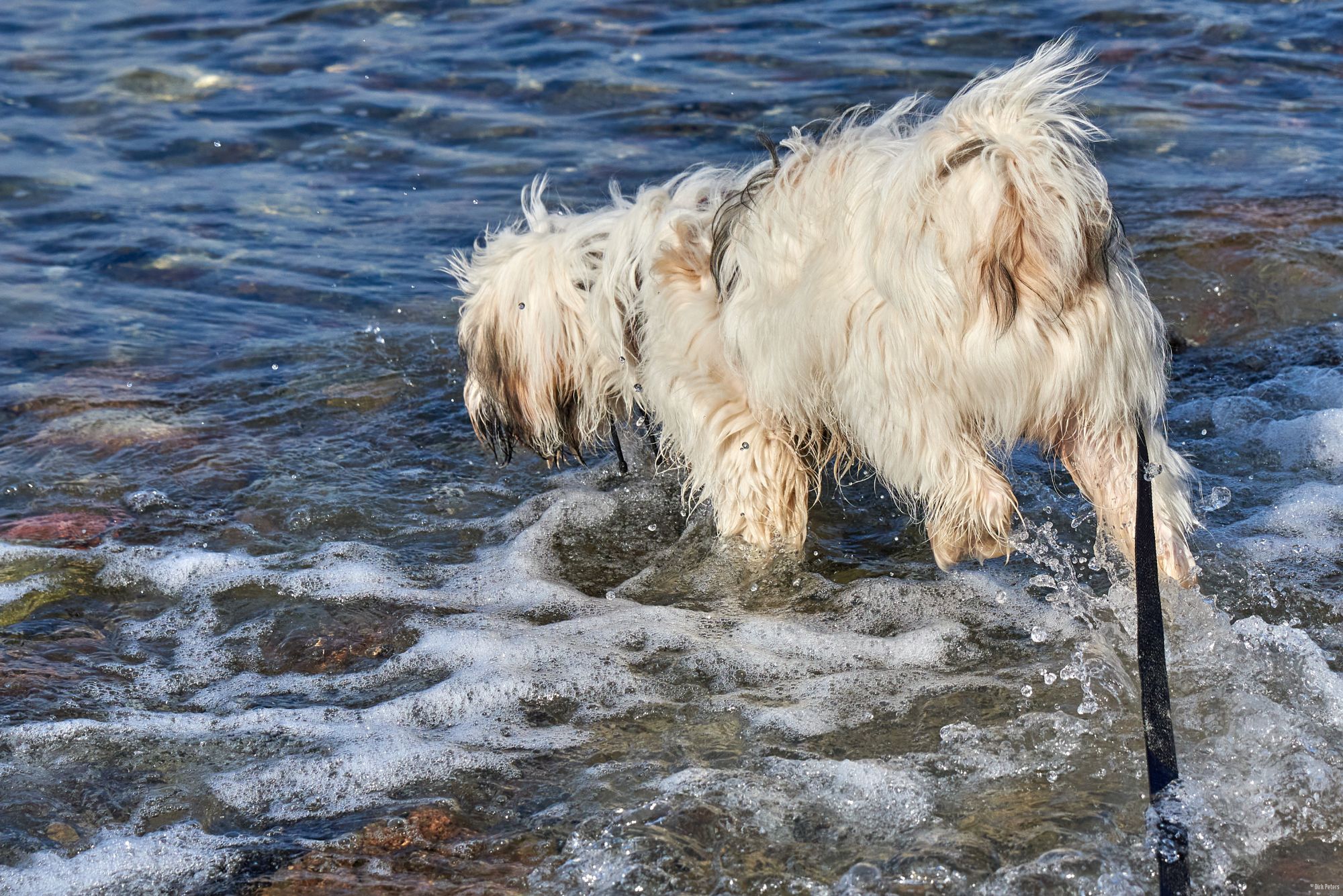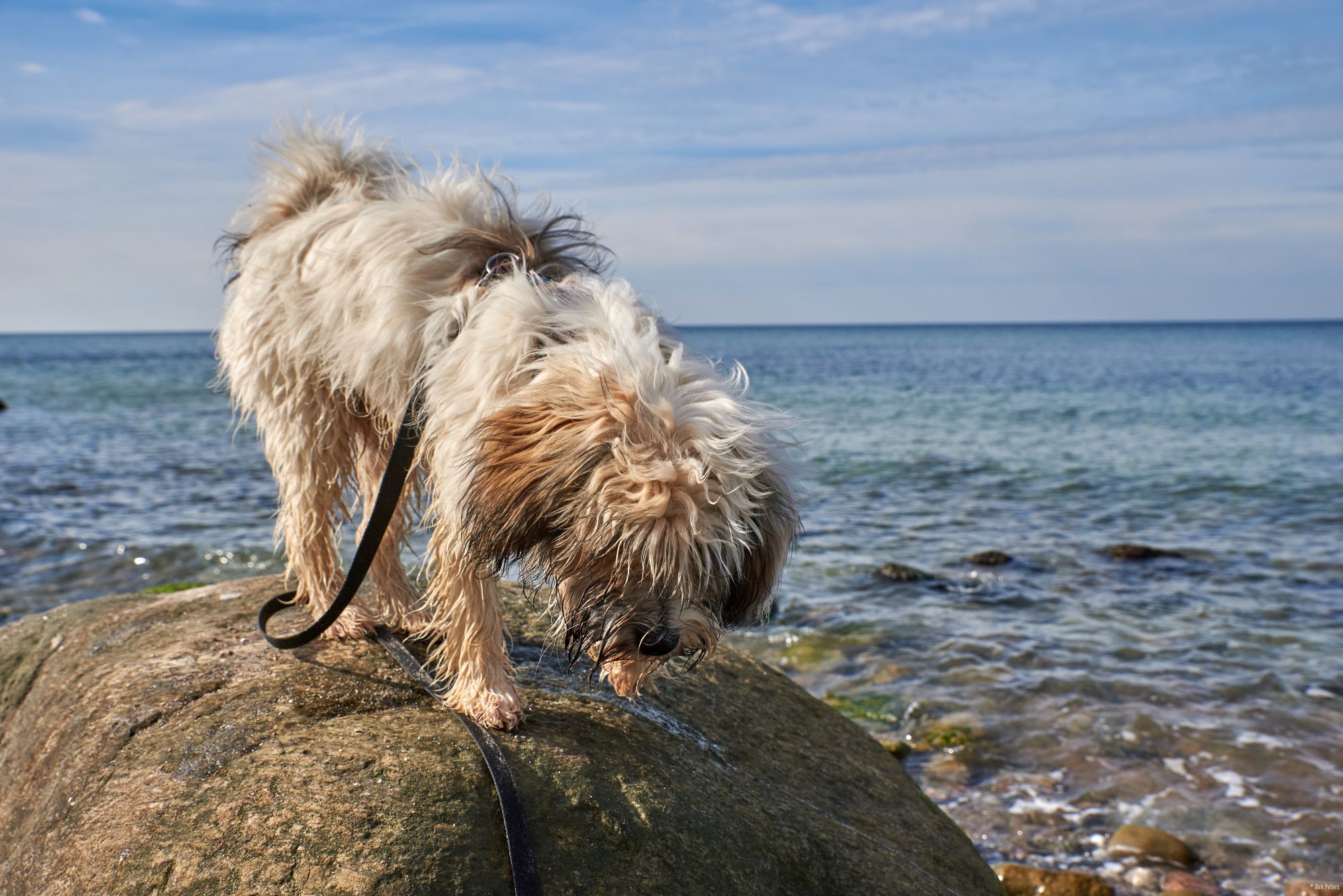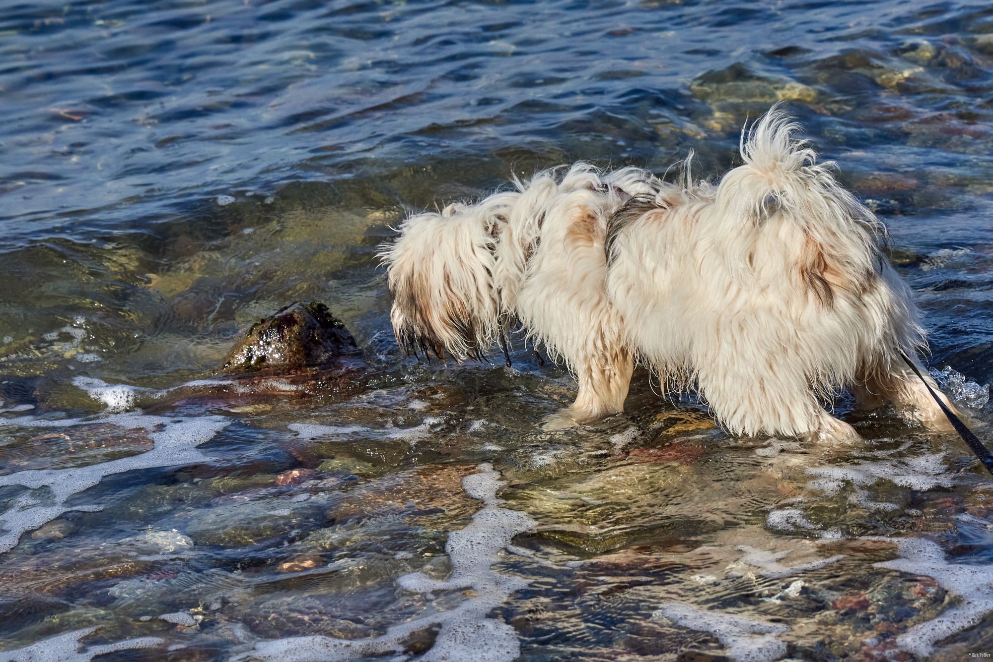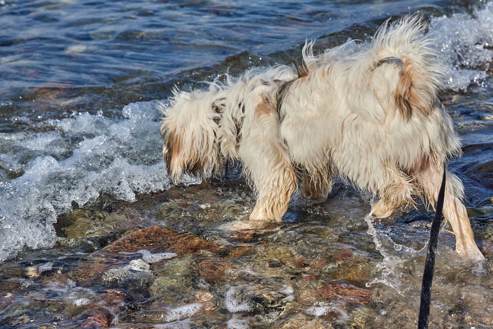 Strand ist einer von Filou’s Lieblingsorte. Wasser, Sand, sowie große und kleine Steine.